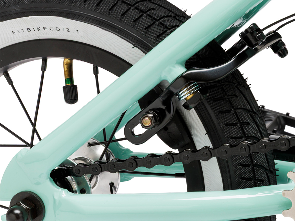 Fit has made moving from a balance bike to a pedal bike easier than ever. They have lightened up the frame and fork,  dialled in the handlebar and crank dimensions and added an easier to pedal 23T sprocket. Small diameter grips and a short reach brake lever help keep young riders in control. Low-tension U-brake springs and a linear brake cable make slowing down easier while domed axle nuts and stem bolts eliminate sharp edges for those occasional mishaps. Quick-release seat clamp allows seat height adjustments on the fly, while curved valve stems make airing up the 12″ tyres easier. With two colourways to choose from, each with their own graphic style, FIT's got a first pedal bike perfect for your little MISFIT.